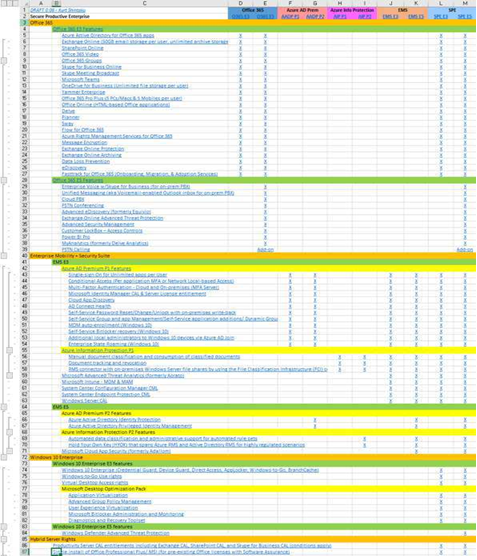 We’ve recently renamed/rebranded the Secure Productive Enterprise suite to “Microsoft 365” (E3/E5) which is now reflected in this post as well as my spreadsheet.