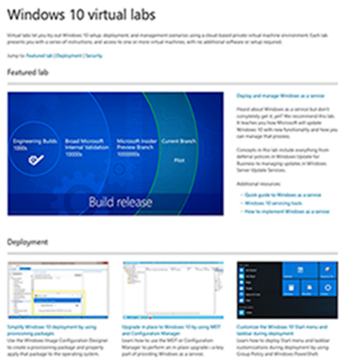 For your convenience, we’ve created a single landing page for these labs on the Windows IT Center – https://aka.ms/w10virtuallabs – and we’ll be adding new labs in the months to come.