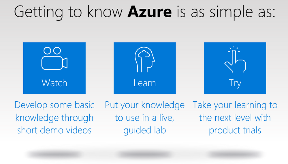 Don’t know what is Azure, or want to learn more about Azure and Cloud? Just choose a topic and use the curated set of demo videos, hands-on labs, and product trials to learn about and try Azure at your own pace. Be sure to also check out the