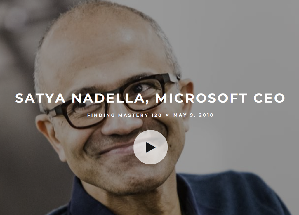 - PODCAST: Finding Mastery– Episode 120, “Satya Nadella”