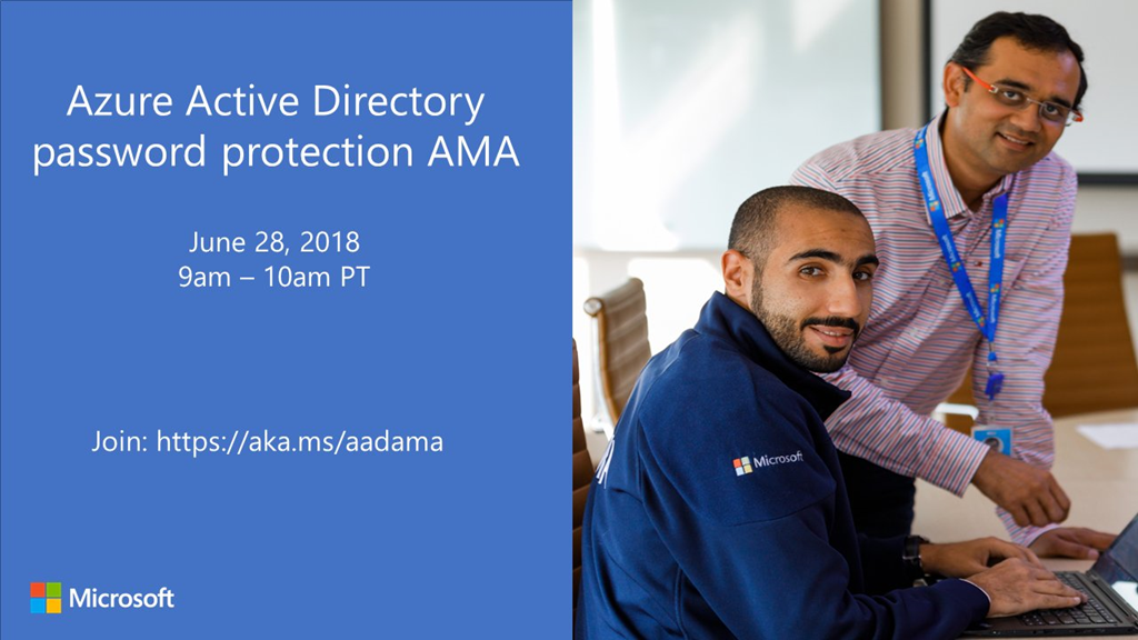 Join the Azure Active Directory team on the Microsoft Tech Community to discuss the public preview of Azure AD Password Protection and Smart Lockout announced here. The AMA will begin on Thursday, June 28th at 9am PT in the Azure Active Directory AMA group.