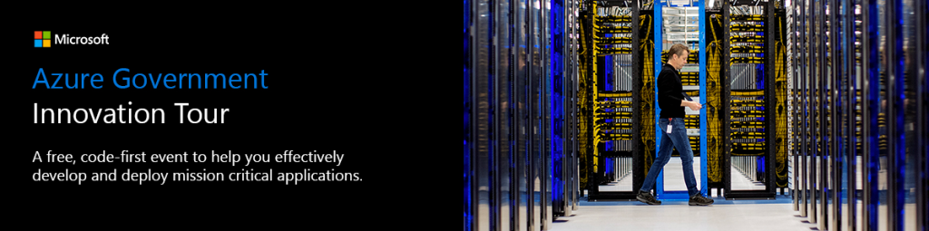If you’re a government-focused developer, IT pro, or mission leader striving to learn the latest on Azure Government and optimize your skills and productivity, be sure to register today and join us for our Azure Government Innovation Tour coming to Raleigh, Chicago, DC, Austin and Atlanta.