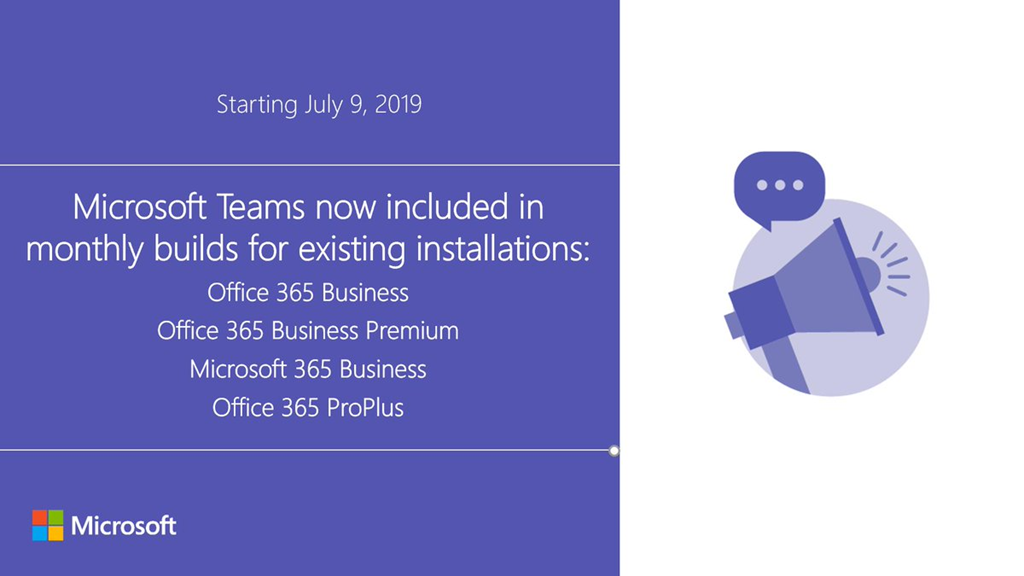 - BLOG: Teams is coming to Office 365 Business & Office 365 ProPlus monthly