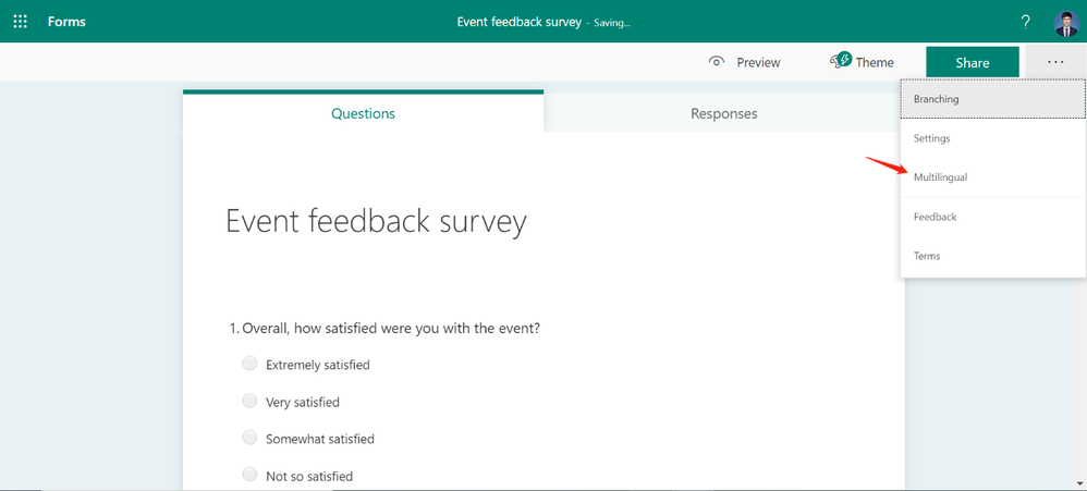 With Forms, Microsoft strives to deliver the best user experience for form designers, respondents, and collaborators. We believe that a key element in creating the best user experience is starting with an intuitive design. We are excited to share two recent advancements in Forms’ design: Multilingual Support, and Office Suite Header.