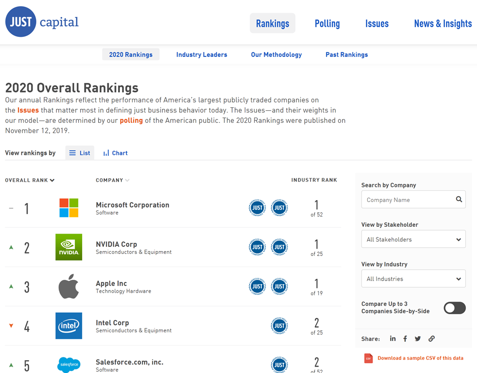 For the second year in a row, Microsoft is ranked as America’s most ethical public company according to non-profit research group Just Capital.