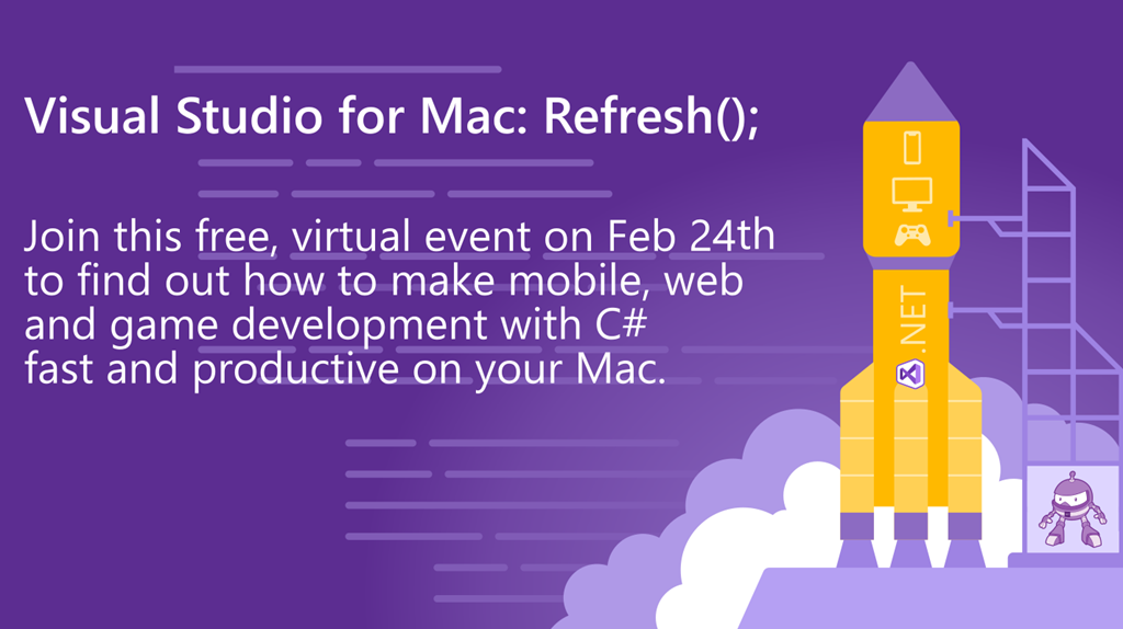Join us online on February 24th for the Visual Studio for Mac Refresh(); event!
