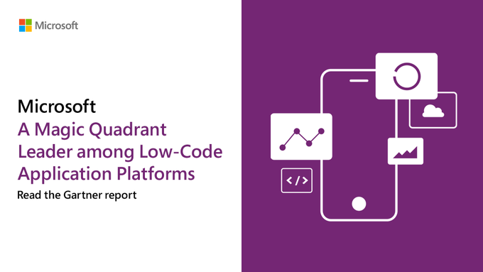 Gartner has recognized Microsoft as a Leader in enterprise low-code application platforms.