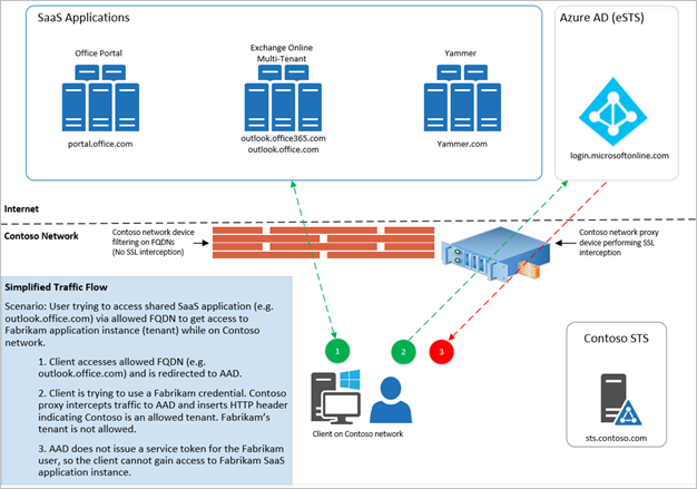 Large organizations that emphasize security want to move to cloud services like Office 365, but need to know that their users only can access approved resources. Traditionally, companies restrict domain names or IP addresses when they want to manage access. This approach fails in a world where software as a service (or SaaS) apps are hosted in a public cloud, running on shared domain names like outlook.office.com and login.microsoftonline.com. Blocking these addresses would keep users from accessing Outlook on the web entirely, instead of merely restricting them to approved identities and resources.