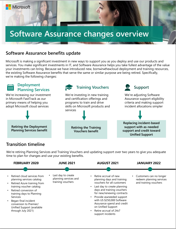 - Software Assurance 2020 Benefit Update Summary: (PDF)