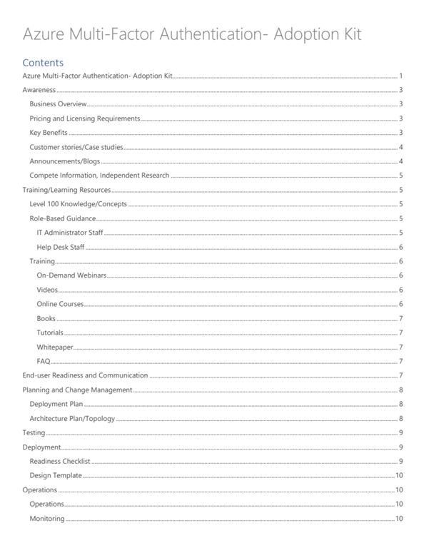 - DOWNLOAD: Azure Multi-factor Authentication (MFA)Adoption Kit