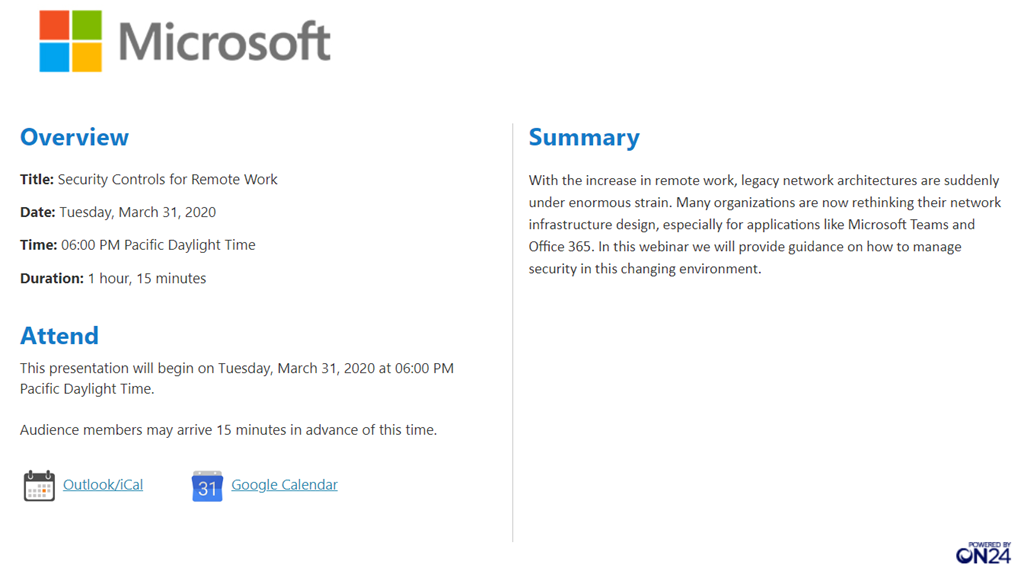 Microsoft Security is hosting a Webinar on Tuesday as follow on to the blog post: Alternative ways for security professionals and IT to achieve modern security controls in today’s unique remote work scenarios. In this webinar we will provide guidance on how to manage security in this changing environment.