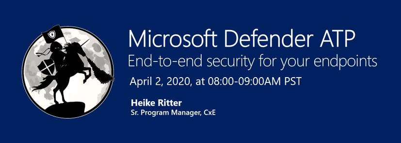 Wanna learn about Microsoft Defender ATP? Come join Heike Ritter, Program Manager for a webinar on Apr. 2, at 08:00-09:00AM PST on "Microsoft Defender ATP: End-to-end security for your endpoints".