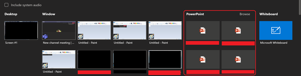All one needs to do is click the “OPEN SHARE TRAY” button (or CTRL-SHIFT-E)within Microsoft Teams and select the PowerPoint Presentation you need to share – or browse your drive for it. This will allow you to upload the deck into the Teams session & automatically convert it into an HTML5 presentation, complete with full animations, transitions, etc.