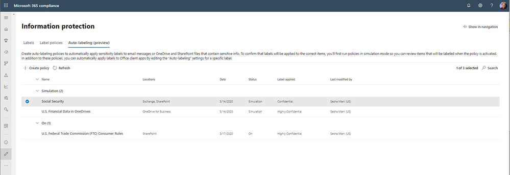 Today our Microsoft Information Protection story becomes even more complete with the GA release of service based auto labeling of sensitive labels for SharePoint Online, OneDrive and Exchange.