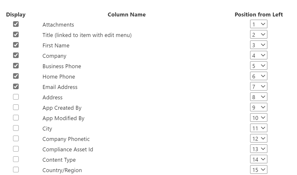 - Reorder the list of Columns by enumerating them in the “Position from the Left” column.