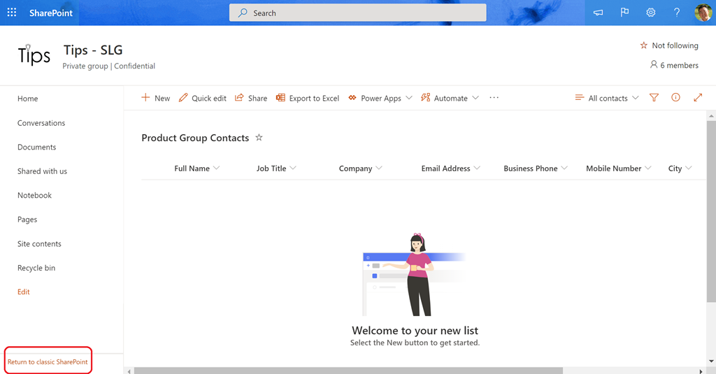 This will make the next step smoother as - Go back to your browser and jump to the Contacts web view for your Contact database. (If you’re using Teams, see the first 3 steps of the blog post, “Part 1: Creating a Contacts Database”)