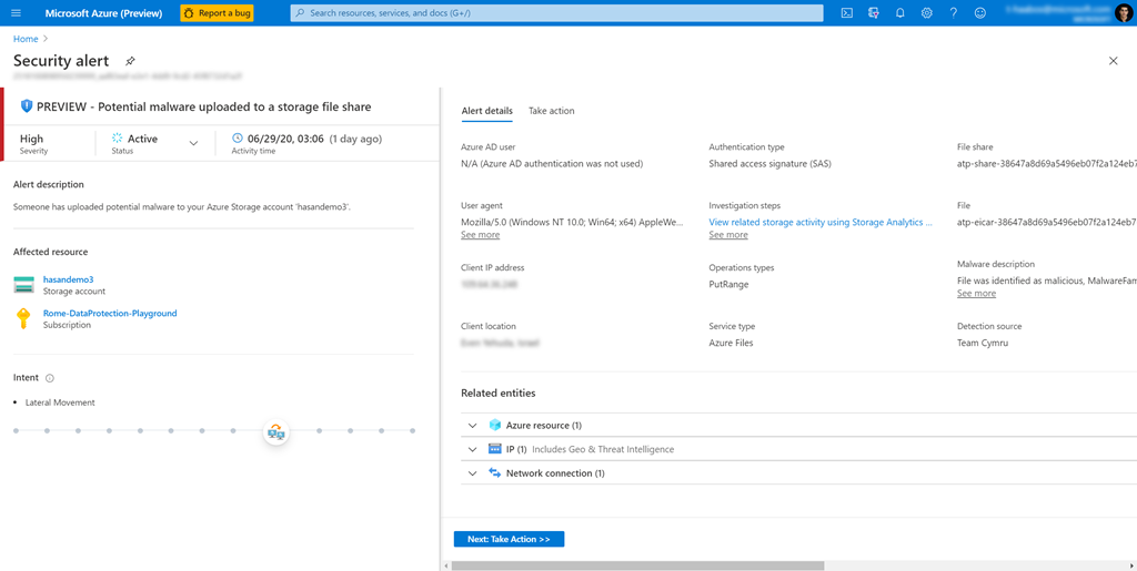 This new “Azure Files support” is technically the same engine that is used to currently protect Azure Storage in the same way so you’ll see the ATP service used interchangably between Azure Storage and Azure Files.