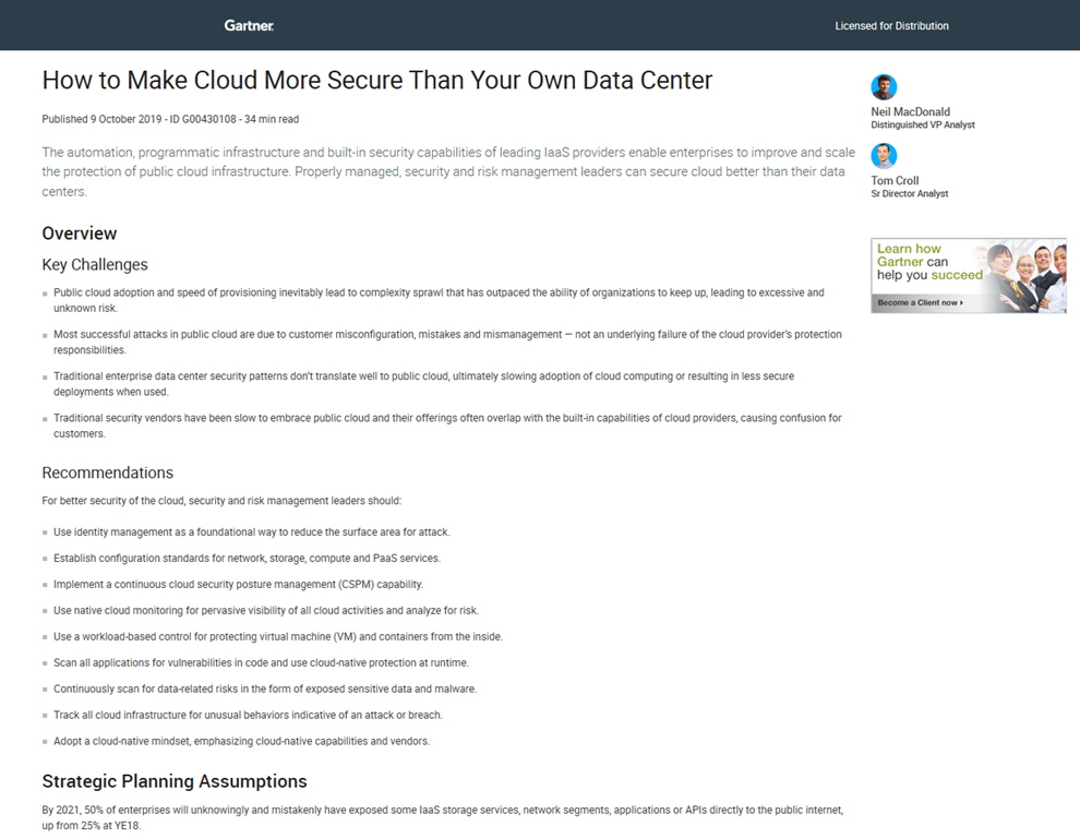 - How to Make Cloud More Secure Than Your Own Data Center, Neil MacDonald and Tom Croll, 9 October 2019