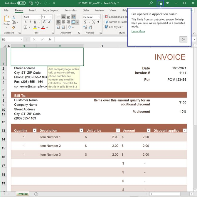 Files from the internet and other potentially unsafe locations can contain viruses, worms, or other kinds of malware that can harm computers and data. To help protect your users against zero-day exploits and other advanced attacks no matter where your users work from, Office 365 opens files from potentially unsafe locations in Application Guard. To help enable you to deliver secure productivity regardless of the model your business chooses, we are pleased to announce that Application Guard for Office* is now generally available.