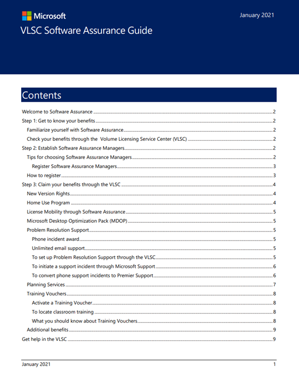 - DOWNLOAD: Software Assurance Benefits Guide – January 2021