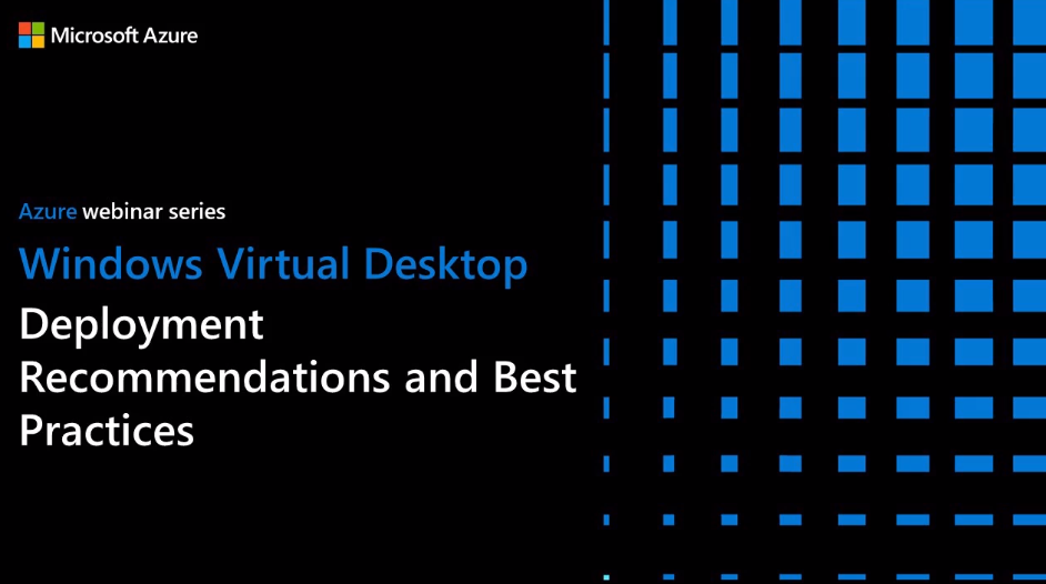 - WEBCAST: Windows Virtual Desktop Deployment Recommendations and Best Practices