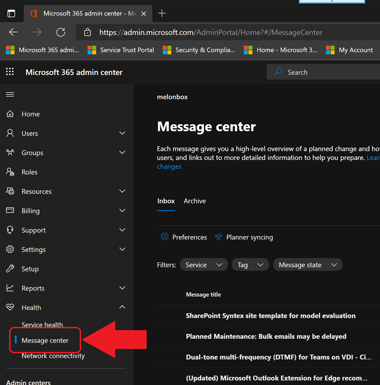 The Message Center in Microsoft 365’s Admin Center is EXTREMELY IMPORTANT to pay attention to because Administrator’s receive notifications that are specific to their tenant in this area. This includes: