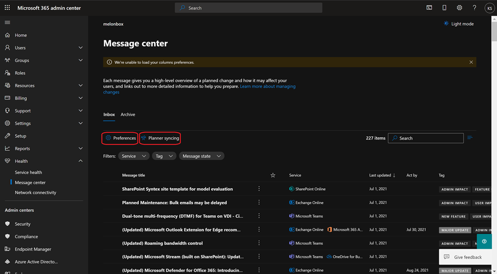 (for individuals using the Admin Center frequently this shouldn’t be hard.) - Sync Message Center notices to Microsoft Planner using the “Planner Sync” feature – available from the Message Center