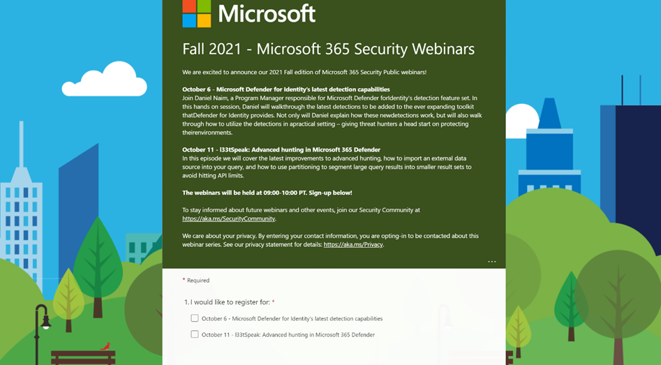 Fall 2021 – Microsoft 365 Security Webinars (office.com)