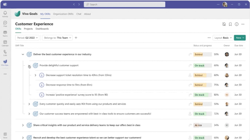 Today, we are excited to announce Microsoft Viva Goals, a new module for business goal setting and management, is now available in private preview. Powered by the acquisition of Ally.io,2 a leading objectives and key results (OKR) company, Viva Goals brings purpose and alignment to Viva customers—alongside culture and communications, wellbeing and engagement, growth and development, as well as knowledge and expertise.