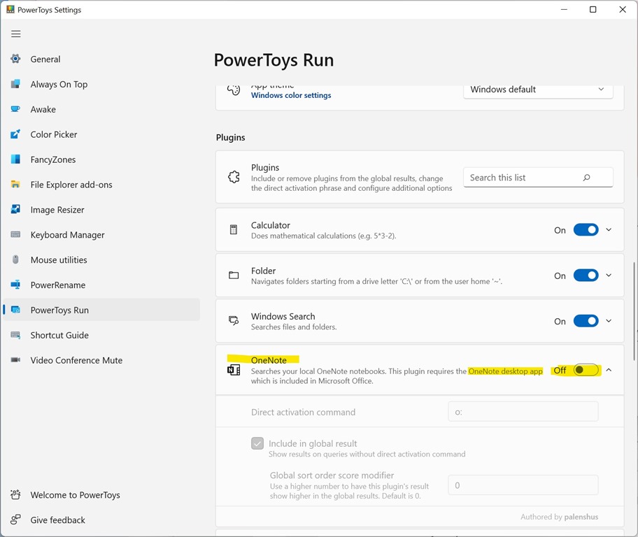 Yay! Microsoft PowerToys now has a OneNote search extension for the PowerToys Run tool: