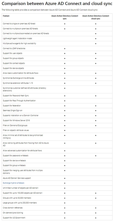 Cloud sync is also great for merger and acquisition situations where some identities are required in the cloud but not connected to the domain that hosts your primary DirSync instance (and you don’t want to use AAD Guest Accounts).
