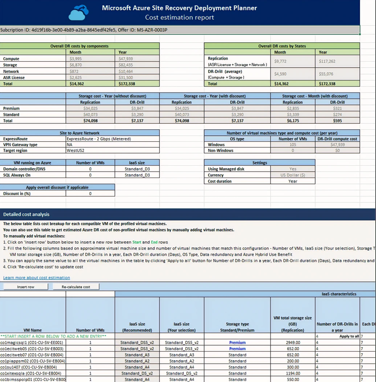 Review the Azure Site Recovery Deployment Planner cost estimation report for disaster recovery of Hyper-VM/VMware to Azure