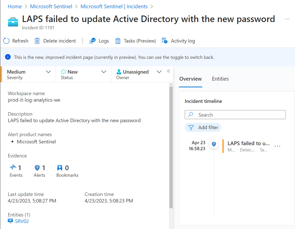 Kaido Järvemets, a Microsoft MVP has written a blog about using Microsoft Sentinel to collect events from the new “Windows Local Administrator Password Solution”.