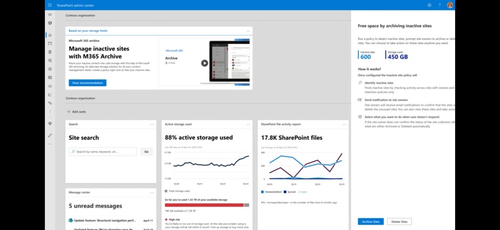 Introducing “Microsoft 365 Archive”: Low cost storage of inactive SharePoint sites. Retain inactive data in a SharePoint cold storage tier & keep the same searchability, security & compliance at a much reduced cost.