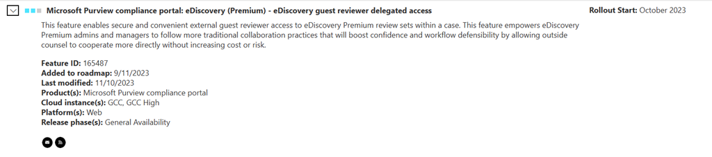 A major feature for Government/GCC eDiscovery Premium users was released last month: “eDiscovery guest reviewer delegated access”