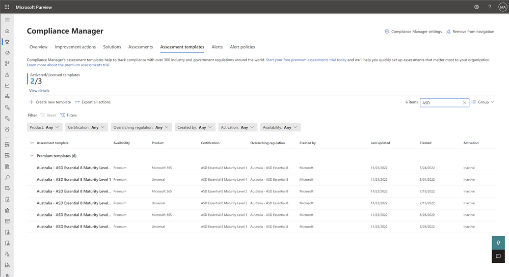 It’s a bit buried in our documentation however customers subscribing to Microsoft 365 E3 are entitled to 3 Premium templates of their choice for Purview Compliance Manager at no charge.