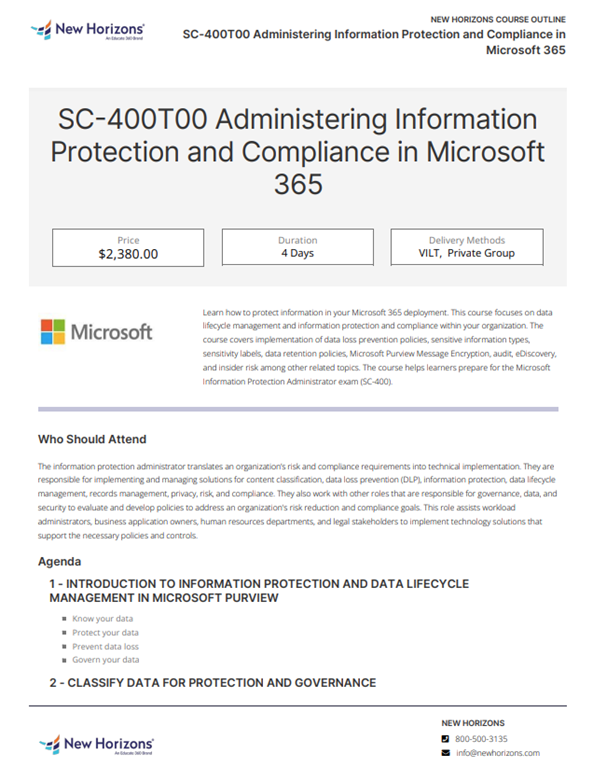 SC-400T00 Administering Information Protection and Compliance in Microsoft 365 | New Horizons