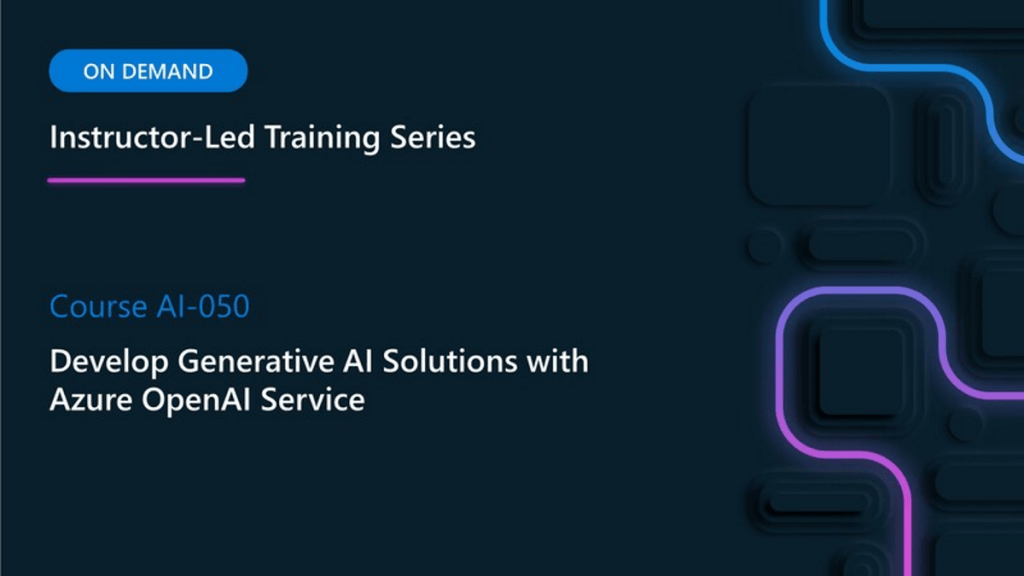 We recently published a FREE special 16-module on-demand video training course, “AI-050 Develop Generative AI Solutions with Azure OpenAI Service”, where instructors were video-recorded for all modules.