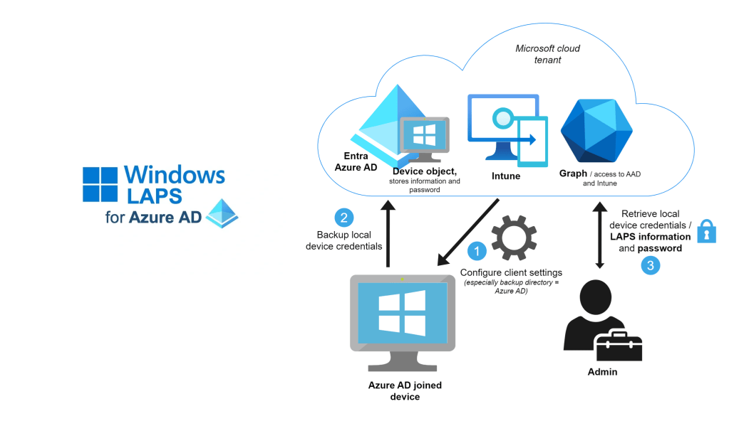 The Windows Local Administrator Password Solution (Windows LAPS) is a solution that changes the Local Admin password on your Windows clients & servers to a randomly generated password on a regular basis & stores the password in Entra ID directory (formerly Azure AD). A privileged role is given the ability to recover Local Admin passwords if required to ‘backdoor’ a workstation or server.