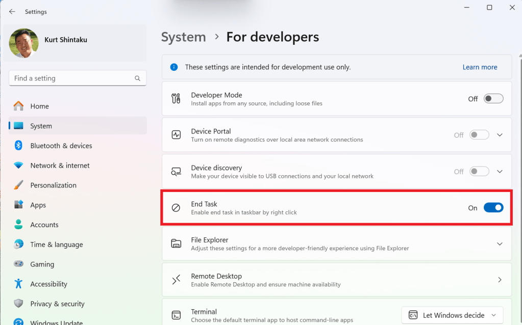- Switch “End Task” to the ON position