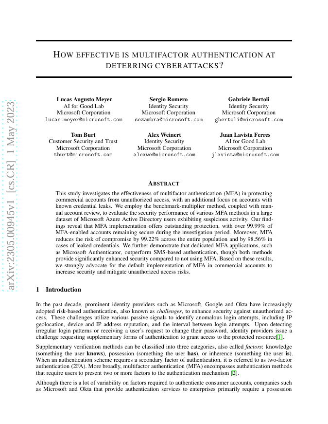 We have a .PDF whitepaper that is downloadable from Microsoft Research that goes over the efficacy of MFA.