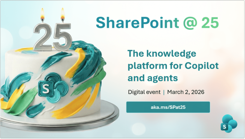 https://aka.ms/SPat25/blog - EVENT: SharePoint at 25: Digital celebration event + live AMA – March 2, 2026 at 9:00 AM PT